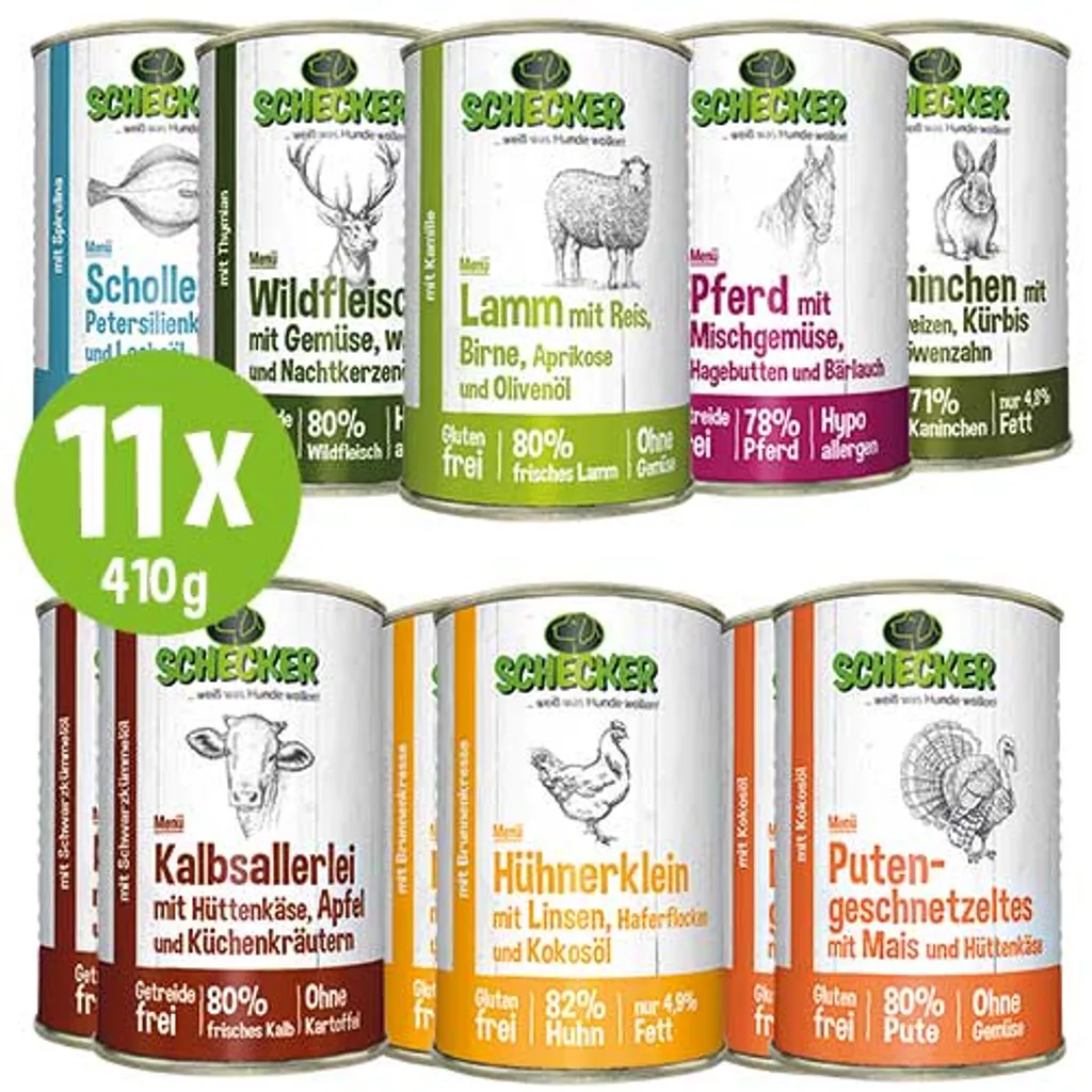 11x410g – Schecker Hundemenü Hundefutter Dosen – Nassfutter Zum Testen