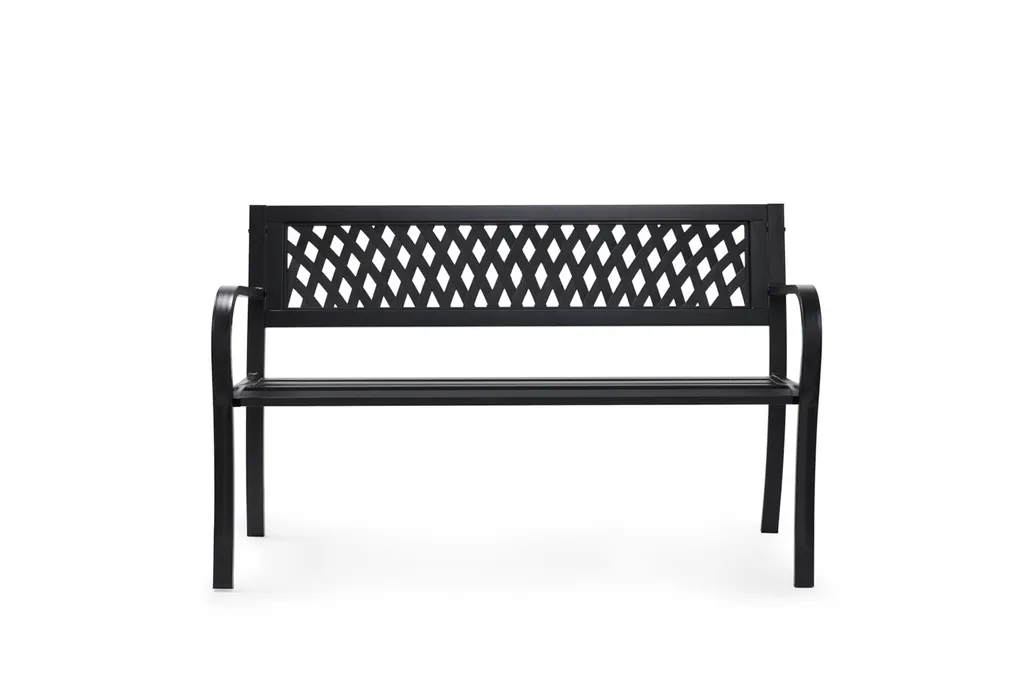 909 OUTDOOR Schwarze Gartenbank Aus Stahl, Wetterfeste Parkbank Mit Armlehnen, Sitzbank Für Balkon, Garten & Terrasse, 2-Sitzer Bank 125 X 53 X 77 Cm