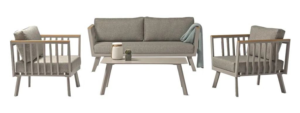 Acamp Gartenlounge Gondola Grau Teakfarben,grau 4tlg. Aluminium