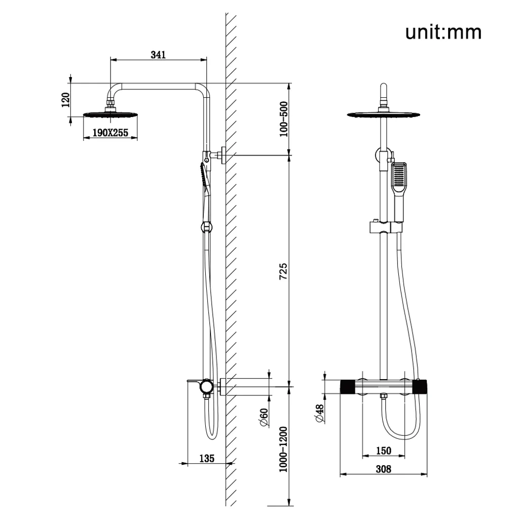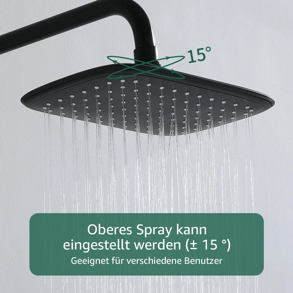 Aihom Duschsystem Mit Thermostat Duscharmatur Schwarz Regendusche Duschset Dusche Inkl. Regal Verstellbarer Duschstange Duschset Edelstahl