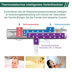 Aihom Thermostat Badewannenarmatur Wasserfall Wannenarmatur Mit Sicherheitsknopf 40℃, Wannenbatterie Mischbatterie Dusche Duscharmatur, Chrom