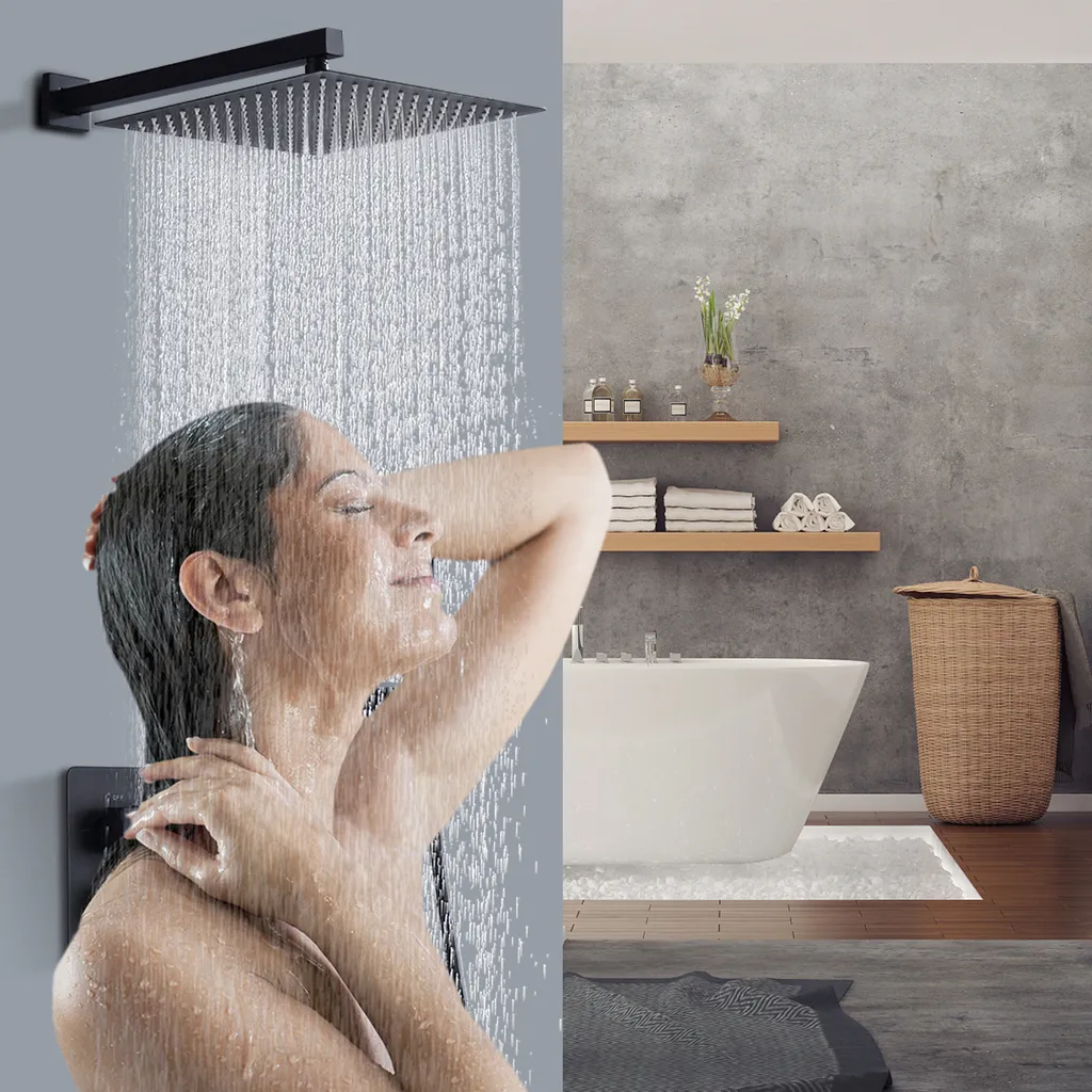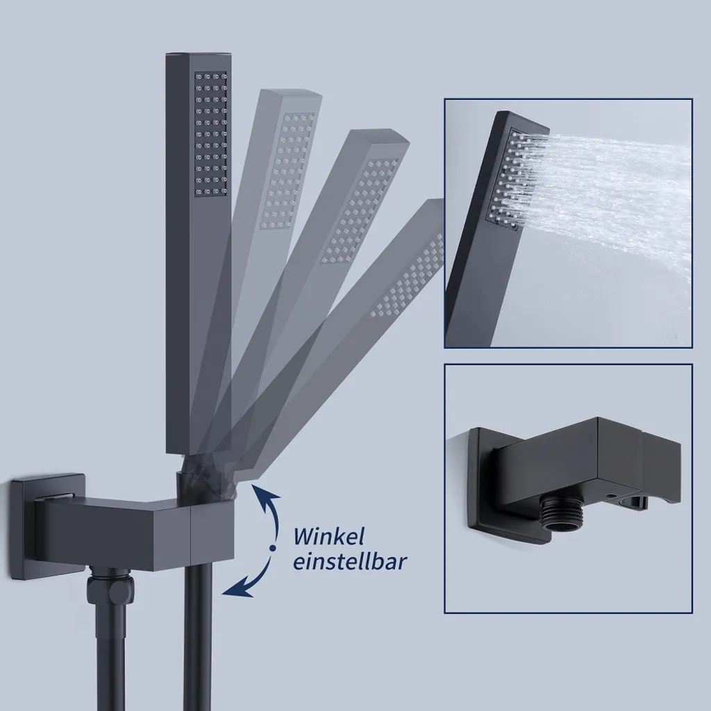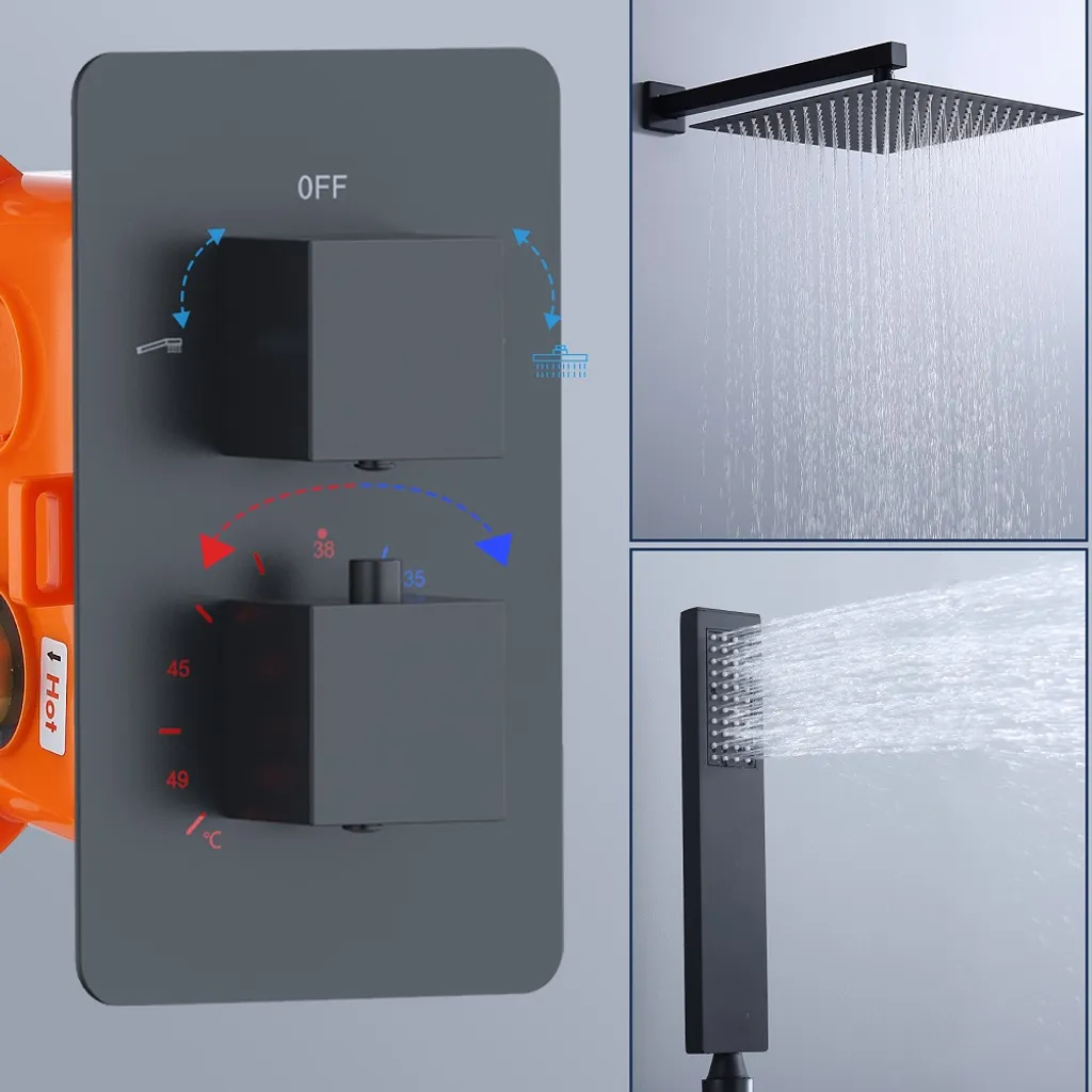 Aihom Thermostat Unterputz Duschsystem Schwarz Regendusche Duschset Duscharmatur Badezimmer Kopfbrause Handbrause Mit Messing Thermostat 38℃ Duschset Unterputz, Schwarz