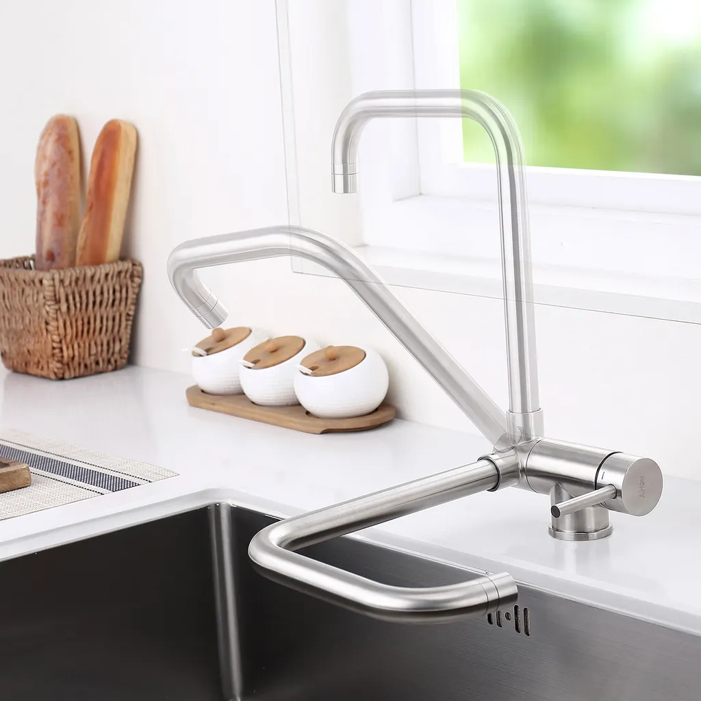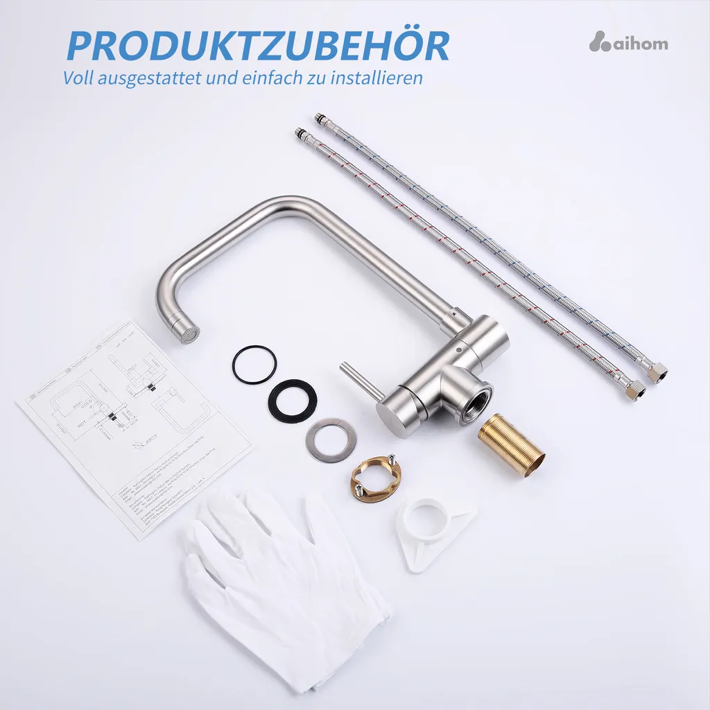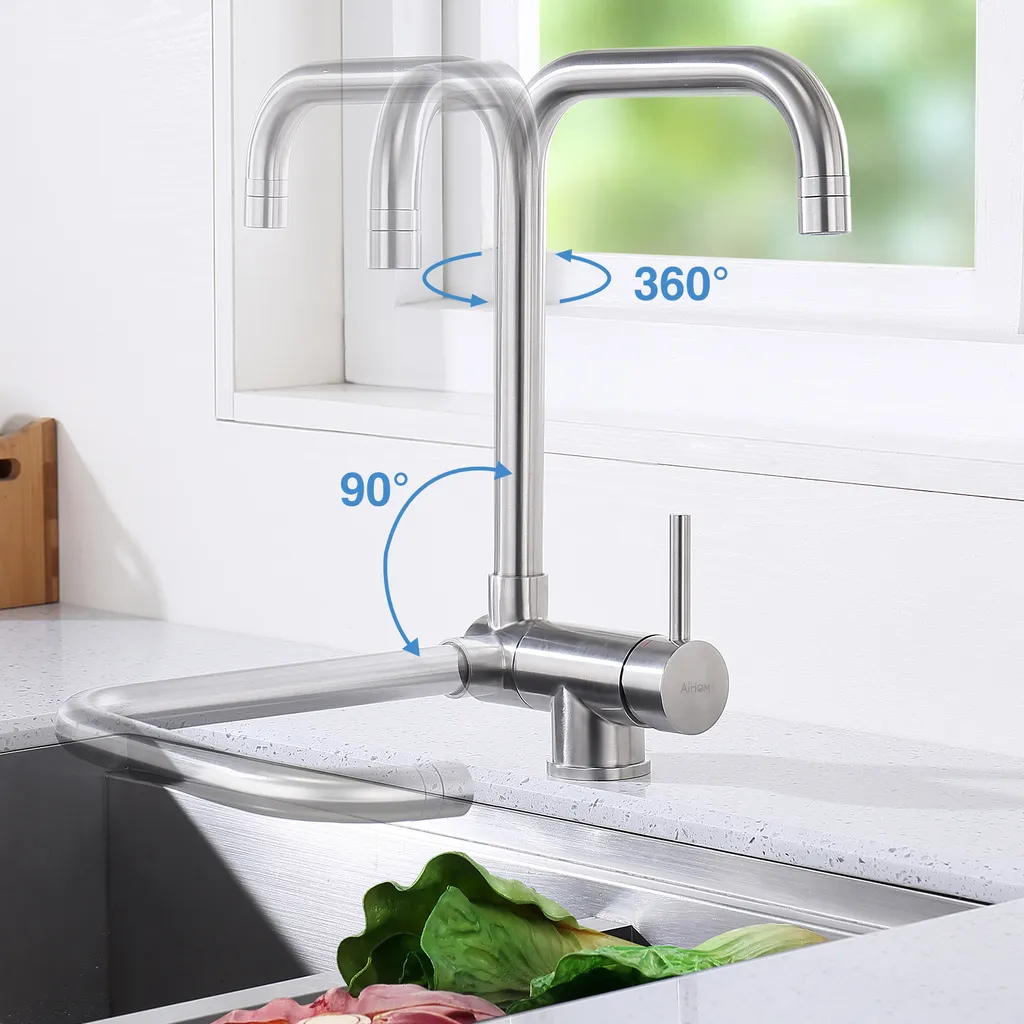 Aihom Vorfenster Küchenarmatur 360° Drehbar Spültischarmatur Wasserhahn Küche Spültischbatterie Armatur Mischbatterie Für Küche Gebürstet