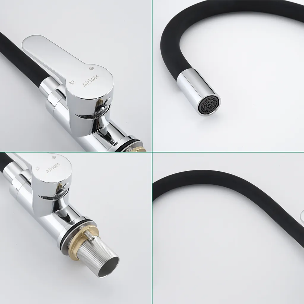 Aihom Wasserhahn Küche Schwarz Mit Flexibler Auslauf Küchenarmatur Mit Hoher Auslauf (235mm) Spültischarmatur Schwarz Mischbatterie Küche Aus Messing