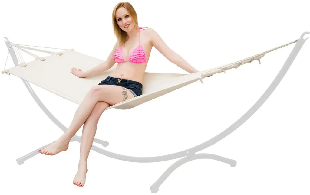 Amanka Outdoor Stabhängematte 190x80cm Garten Hängematte Mit Stange Bis 100kg Beige