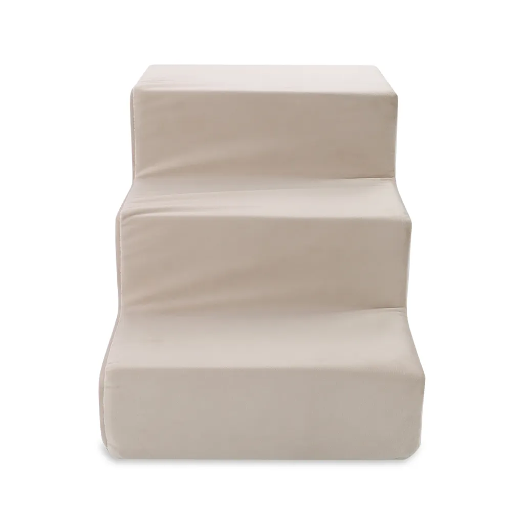 Amazinggirl Hundetreppe Für Kleine Hunde 30 Cm Hoch – Katzentreppe Velvet Hunderampe Sofa Haustiertreppe 3 Stufen Treppe Beige