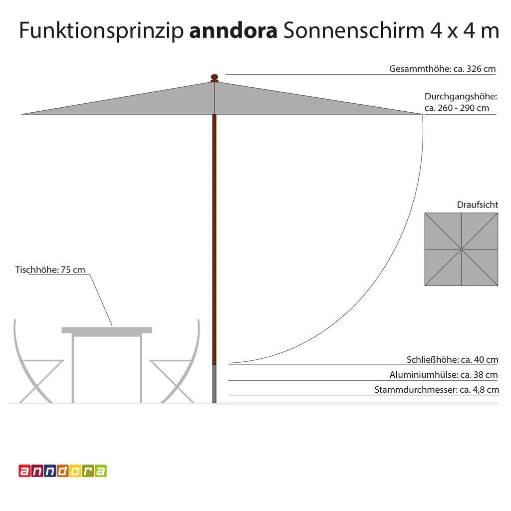 Anndora Sonnenschirm 4x4m Eckig Natural Winddach UV-Schutz – Natural