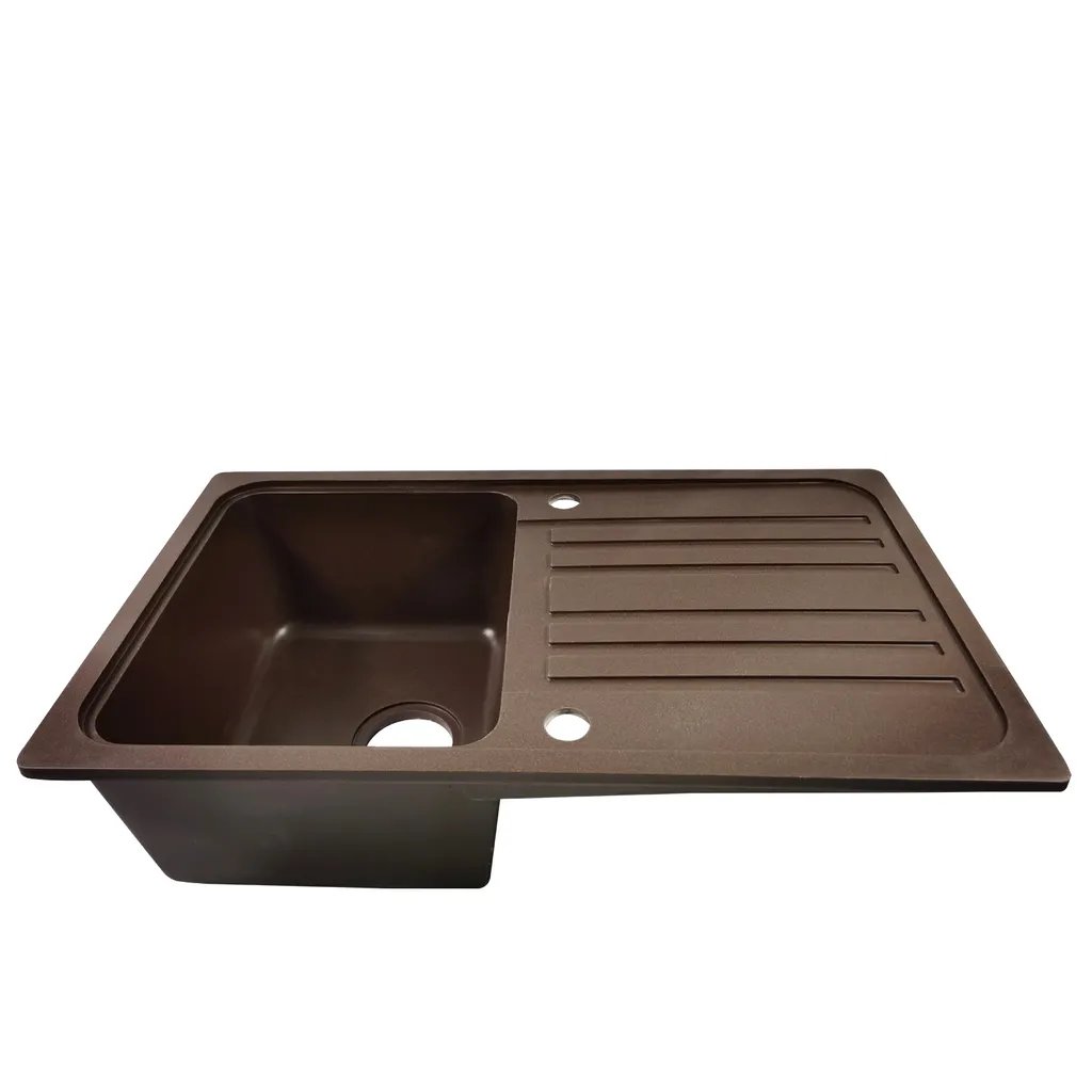 Aquamarin® Granitspüle Mit Siphon Und Armatur – In Braun, 76x46cm, Abtropffläche, Rechteckig, Gesprenkelt, In 5 Farben – Spülbecken, Einbauspüle, Küchenspüle, Einzelbecken, Verbundspüle