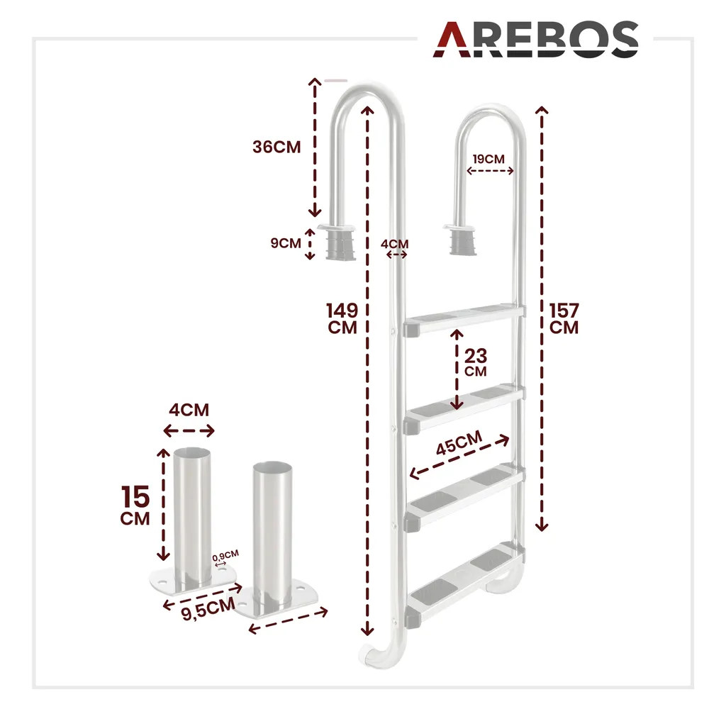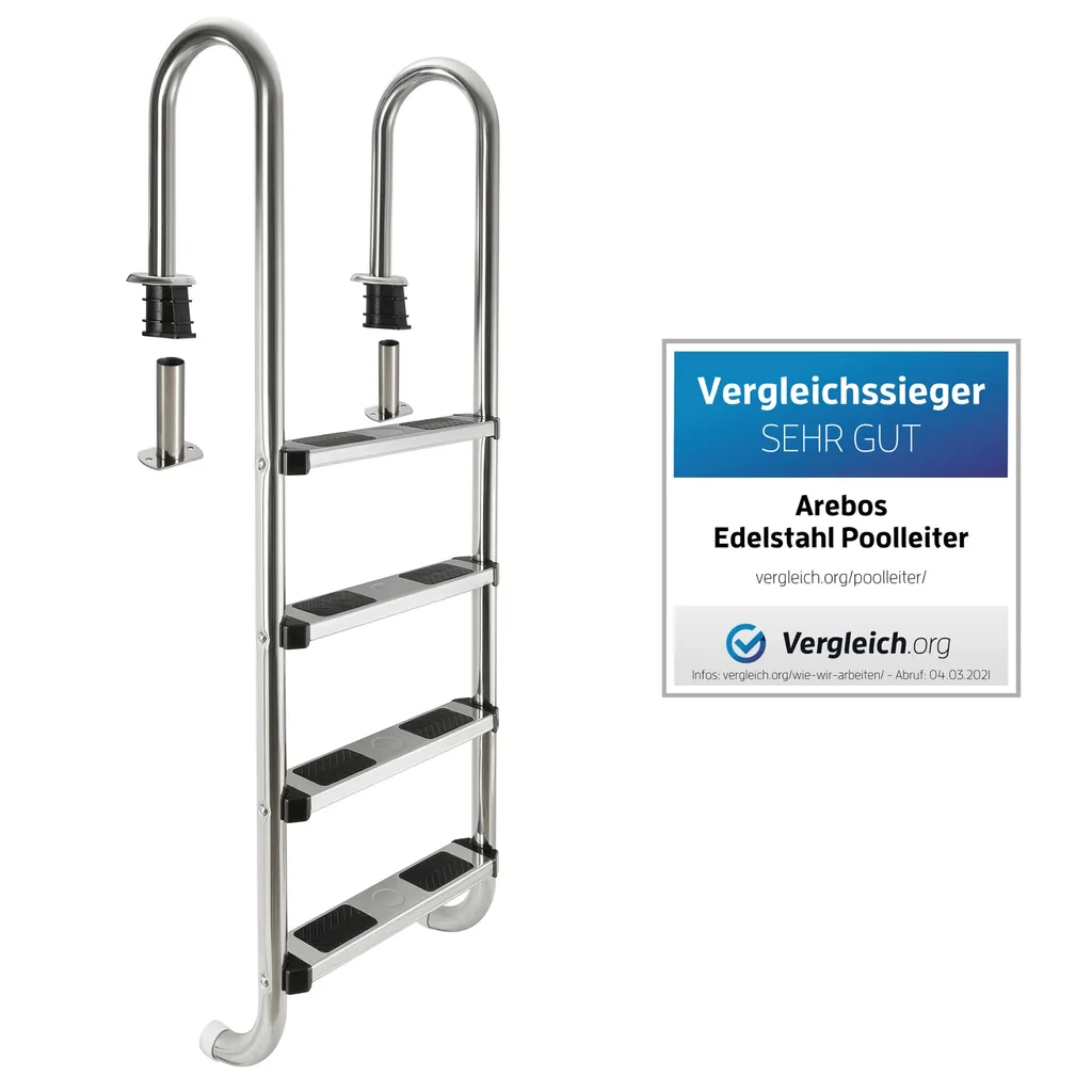 AREBOS Edelstahl Poolleiter, Mit Antirutschpads Auf Den Sprossen, Einstiegsleiter Silber, Einbauleiter 4 Stufen
