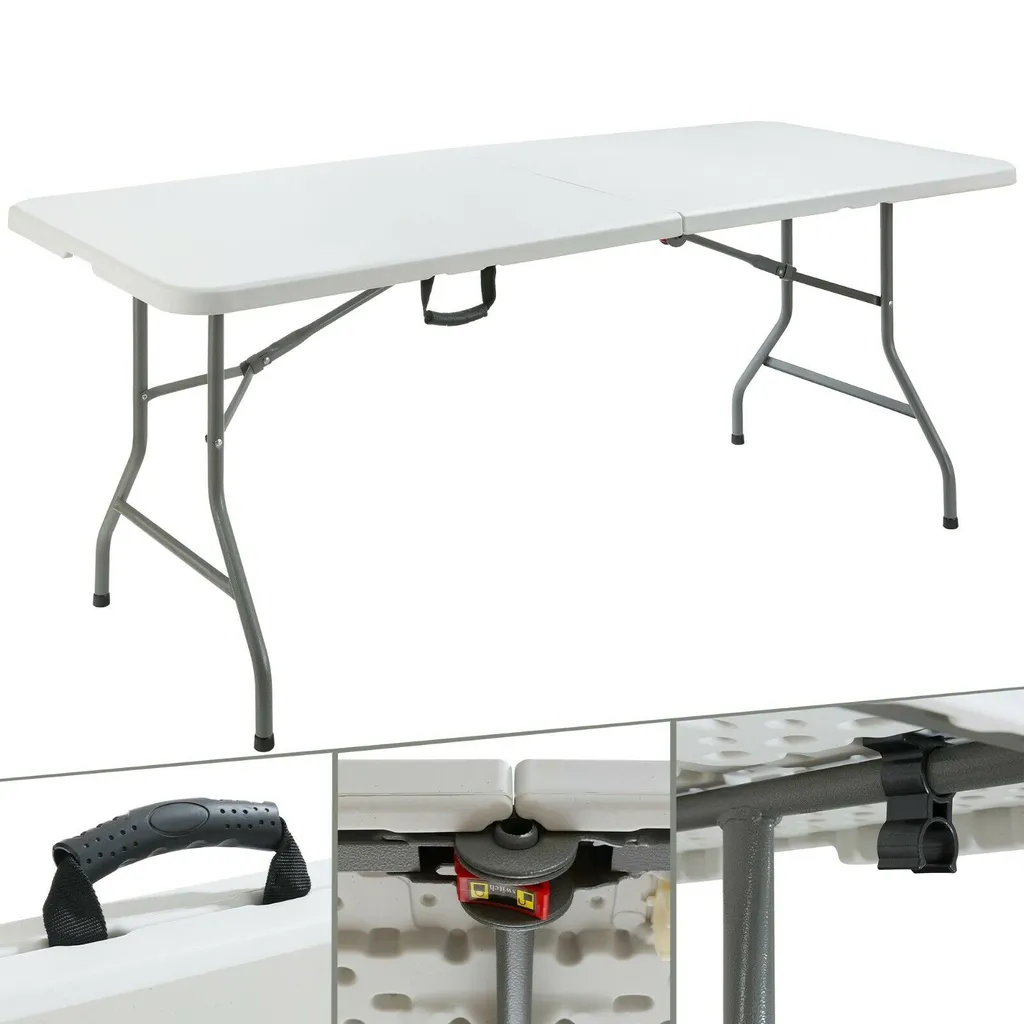 AREBOS Klapptisch 180 Cm, Mit Tragegriff, Aus Metall Und Wetterfestem Kunststoff, Weiß