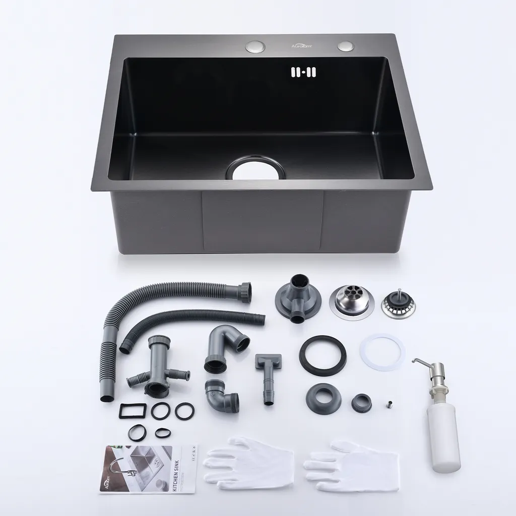 Auralum Edelstahl Küchenspüle Einbauspüle 55 × 45 CM + Hochdruck Ausziehbar Küchenarmatur, Schwarz