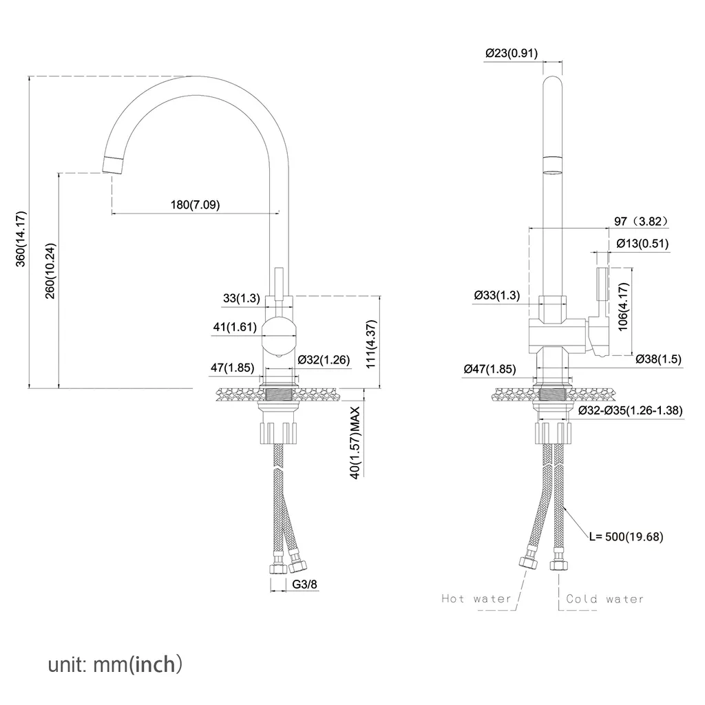 Auralum Hochdruck Küchenarmatur Küchenmixer 360 ° Drehbarer Mischbatterie Spültischarmatur Spülbecken Küche