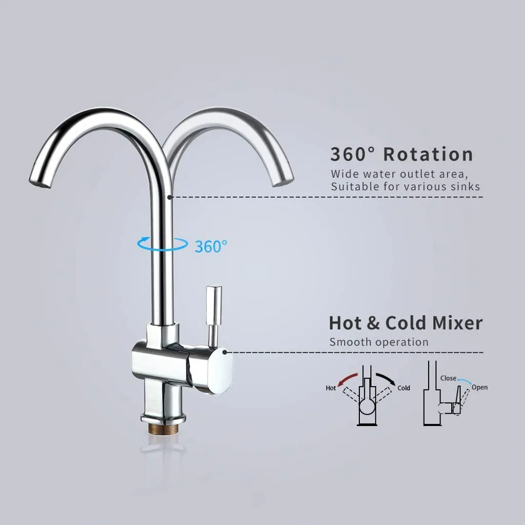 Auralum Küchenarmatur Spültischarmatur Aus Edelstahl Für Küche, Hochdruck Wasserhahn Küche Mit 360° Schwenkbarer , Chrom