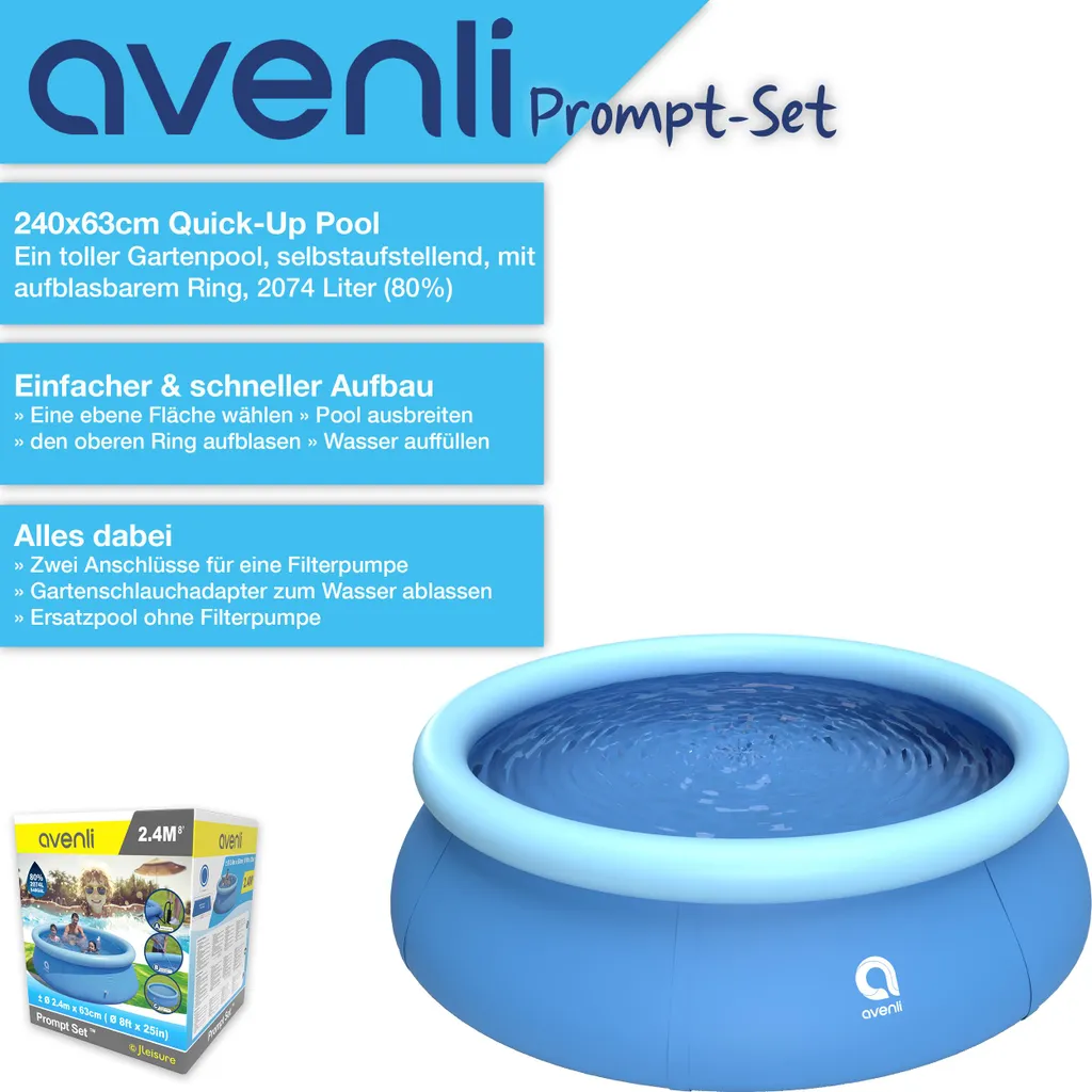 Avenli Prompt Set 240 X 63 Cm Quick Up Pool, Mit Aufblasbarem Ring, Aufstellpool Ohne Pumpe, Blau