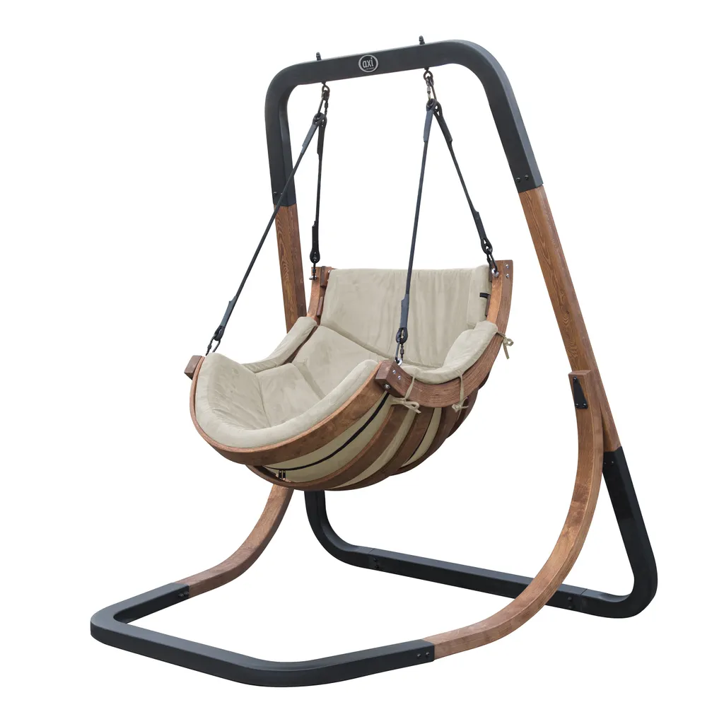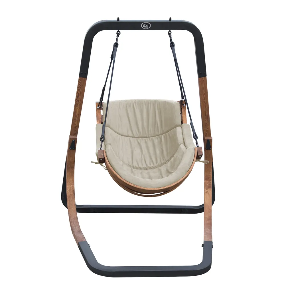 AXI Capri Hängestuhl Mit Gestell Aus Holz | Hängesessel / Hängeschaukel Beige Für Den Garten | Outdoor Lounge Stuhl Für 1 Person | Belastbar Bis 150 Kg