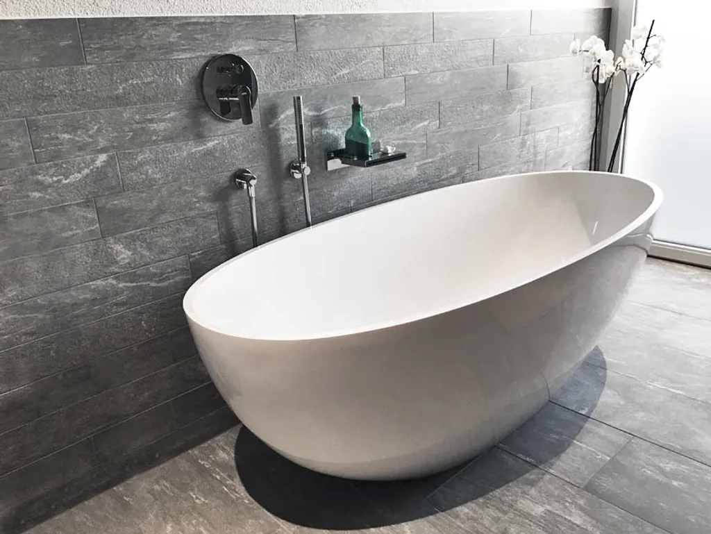 Bädermax Freistehende Badewanne Mineralguss Weiß Glänzend Oval 180x80x60