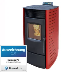 Nemaxx P9 Pelletofen Pelletkamin Pelletkaminofen 9 KW Kaminofen Heizofen Pellet Ofen Kamin Pelletheizung Heizung Heizgerät Kaminheizung Pellets – Rot – WiFi-Ready