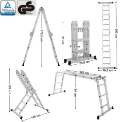 SONGMICS Alu 350 Cm Mehrzweckleiter Bis 150 Kg 12 Stufen Mit 2 Gerüstplatten Haushaltsleiter Teleskopleiter Multifunktionsleiter GLT36M