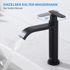 Aihom Kaltwasserhahn Schwarz Wasserhahn Kaltwasser, Waschtischarmatur Wasserfall Für Gäste WC, Einzigartiges Armatur Waschbecken Mit Auslaufhöhe 118 Mm Einhebelarmatur Für Badezimmer