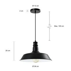QUVIO Hängelampe Retro – Lampen – Deckenlampen – Beleuchtung – Deckenlampen – Küchenlampen – Lampe – Vintage – E27-Fassung – Mit 1 Licht – Für Den Innenbereich – Aluminium – D 36 Cm – Schwarz Und Weiß