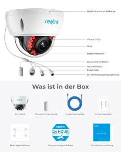 Reolink 4K PoE Kamera Outdoor Mit 5X Optischem Zoom, IK10 Vandalismusgeschützt Überwachungskamera Außen, Personen-/Autoerkennung Und Zeitraffer, 24/7-Aufnahme, Videoüberwachung RLC-842A