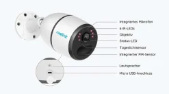 Reolink Go EXT Mobile 4G LTE 2K 4 MP Super HD-Überwachungskamera Mit Intelligenter Personen- Und Fahrzeugerkennung, Inkl. 64 GB SD-Karte