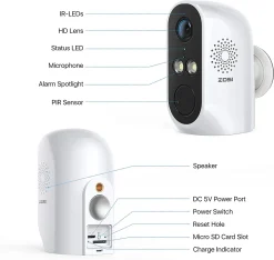 ZOSI C306 Drahtlos Batteriebetrieben Außen Akku Kamera Cloud Funkkamera Mit Farbnachtsicht, PIR Menschenerkennung, Licht&Ton Alarm
