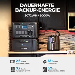 BLUETTI Erweiterbare Tragbare Powerstation AC300/3PV200 Solarmodule Mit B300 Erweiterungsbatterie, 3072Wh LiFePO4 Batterie Backup Mit 6 3000W AC Steckdosen (6000W Spitzen), Solargenerator Für Vanlife