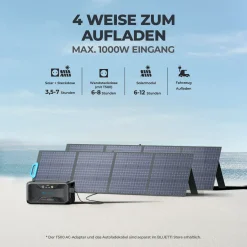 BLUETTI EP500 Stromerzeuger Mit 3 X Solarpanel 350 W, Mobiler Stromspeicher Solar Generator, Erweiterbare Haushalts-Batterie Für Notstrom-Ausfälle