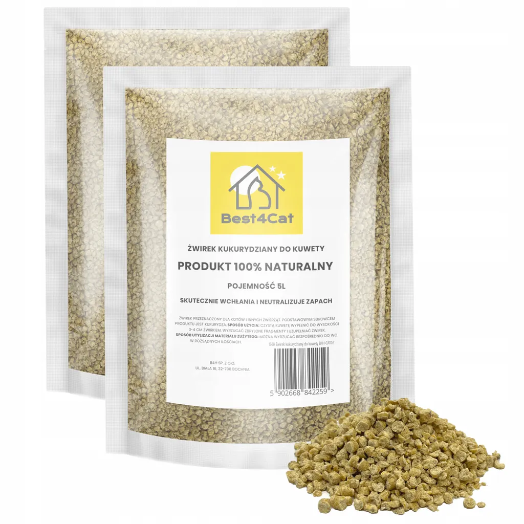 Best4Cat Katzenstreu 10l, Natürlich 100 % Pflanzliche Katzenstreu Klumpstreu | Maisspindelgranulat Katzenstreu Geruchsneutralisierend Mit Maximaler Saugkraft | Staubfrei, Pfotenschonend Für Katzenklo