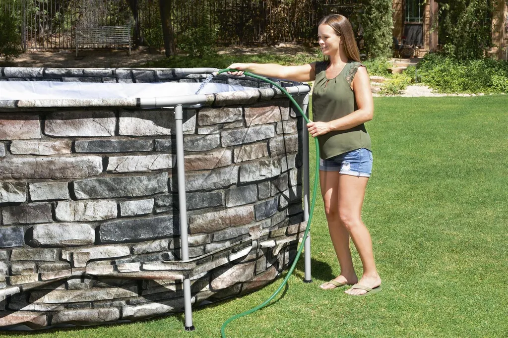 Bestway® Power Steel™ Comfort Jet Series™ Frame Pool-Set Mit Filterpumpe 610 X 366 X 122 Cm, Steinwand-Optik (Naturstein), Oval
