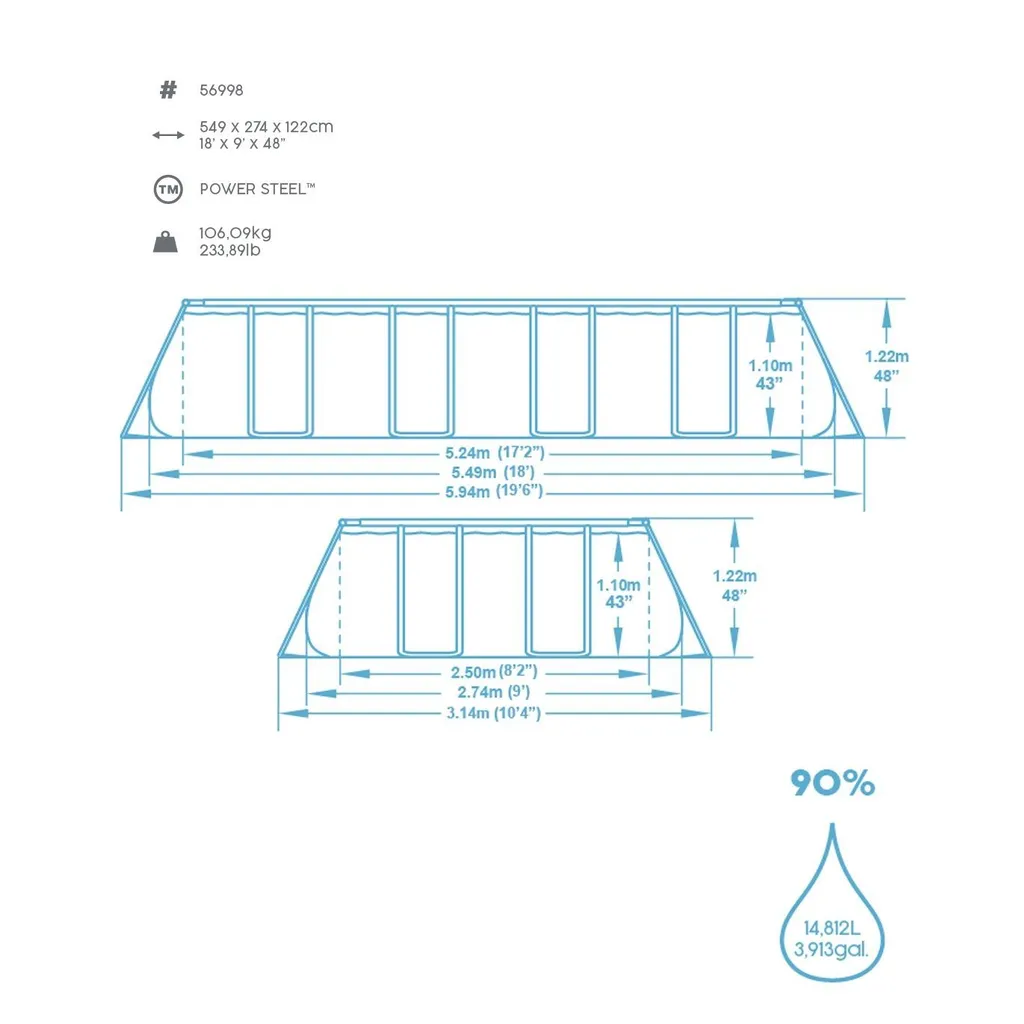 Bestway Power Steel™ Frame Pool Komplett-Set, Eckig, Mit Filterpumpe, Sicherheitsleiter & Abdeckplane 549 X 274 X 122 Cm, Schwimmbecken, Schwimmen, Pools