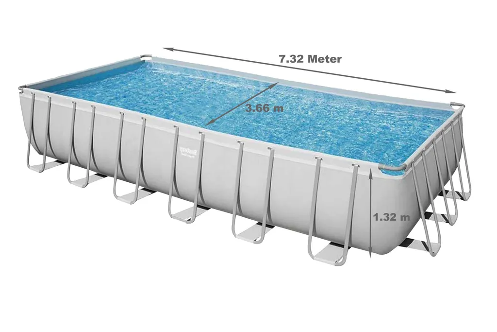 Bestway Power Steel™ Frame Pool Komplett-Set, Eckig, Mit Sandfilteranlage, Sicherheitsleiter & Abdeckplane 732 X 366 X 132 Cm