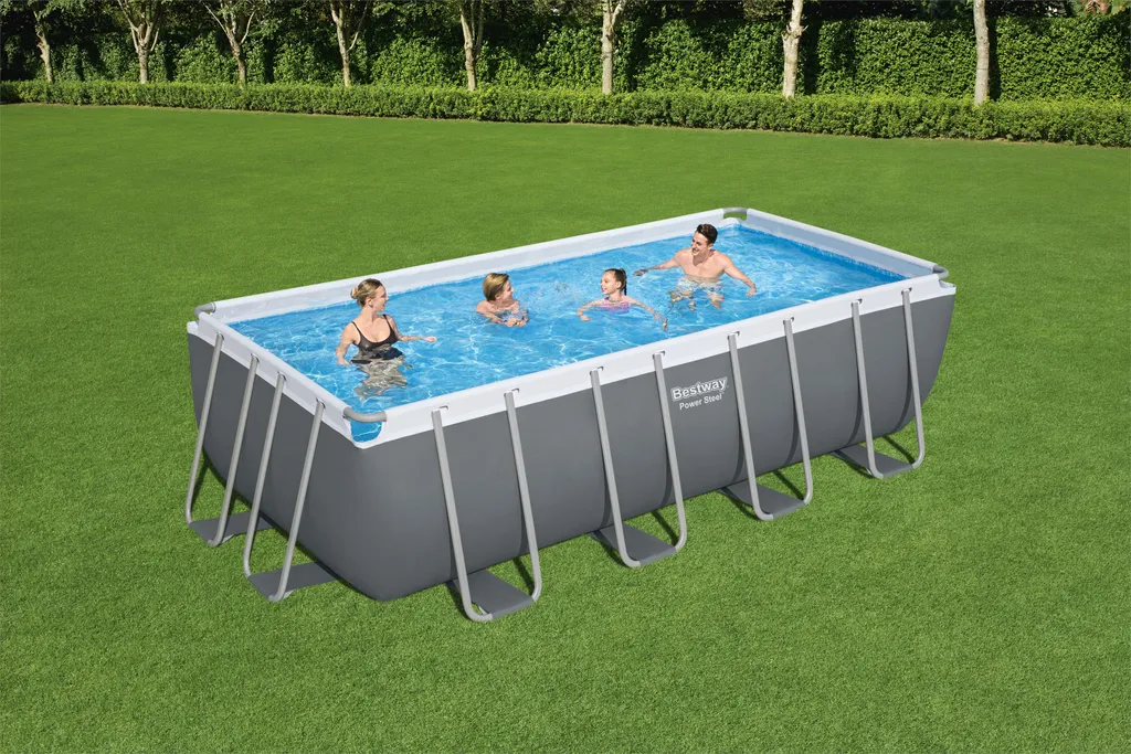 Bestway® Power Steel™ Frame Pool Komplett-Set Mit Filterpumpe 488 X 244 X 122 Cm, Grau, Eckig