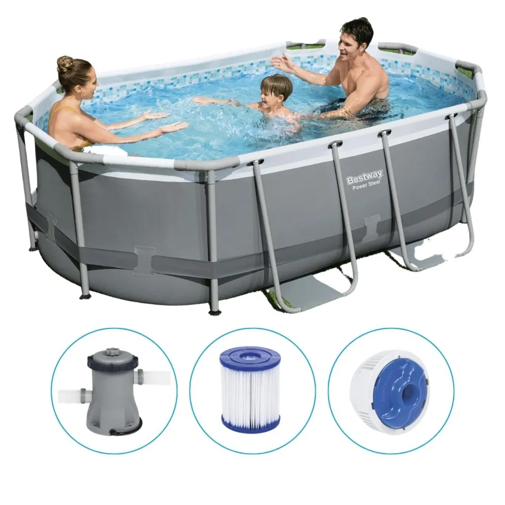 Bestway® Power Steel™ Frame Pool Set Mit Filterpumpe 305 X 200 X 84 Cm, Grau, Oval
