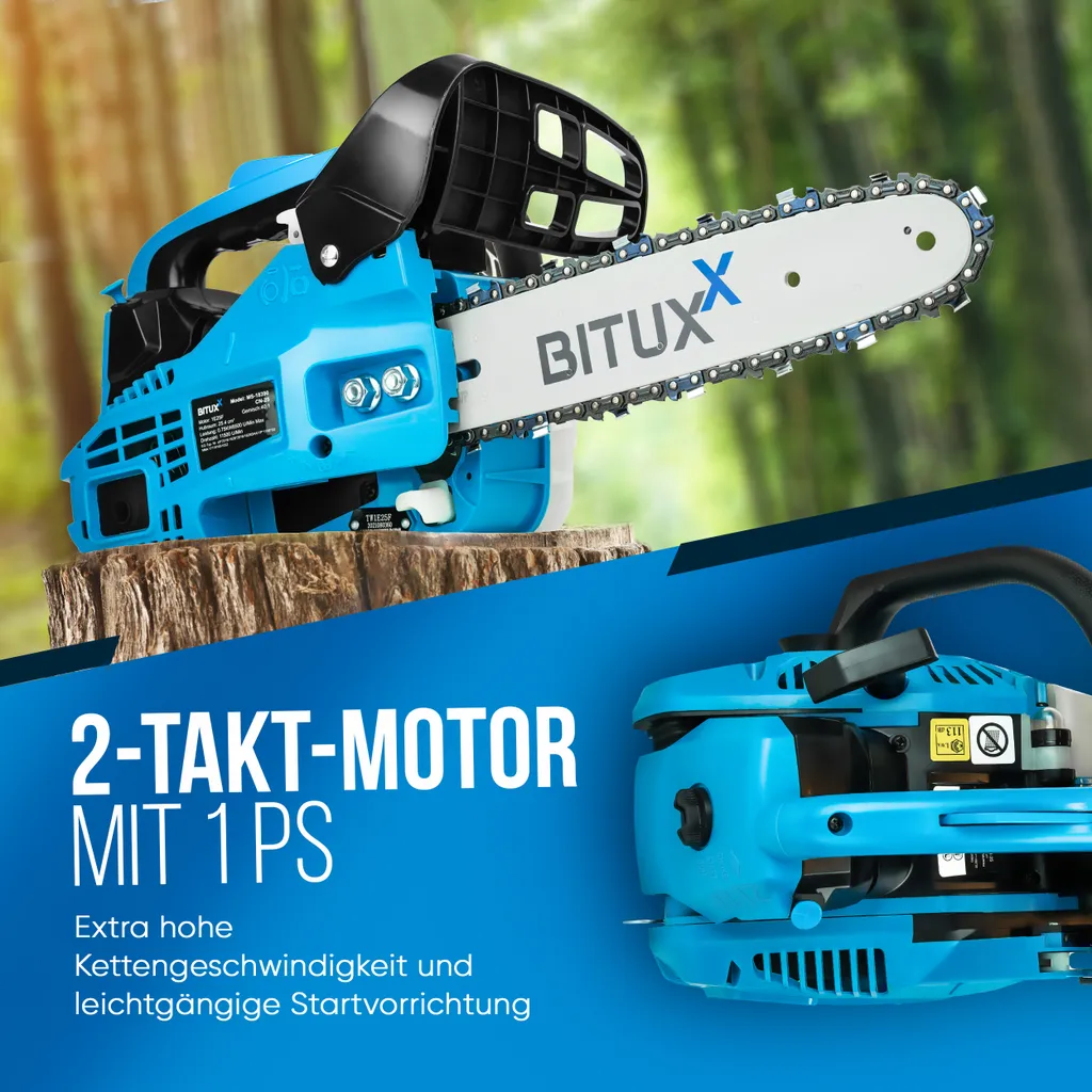 Bituxx Benzin Motor Kettensäge 25ccm 1PS 12″ Schwert Blau, MS-18390