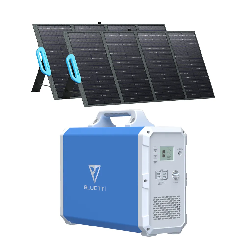 BLUETTI EB240 Tragbarer Solar Stromerzeuger 2400Wh Mit 2pcs Solar Panel 120W, Kraftwerk Für Home RV Notfall, 1000W AC Steckdose, MPPT, Falten Solar Panel Bundle, Outdoor Power Alternative