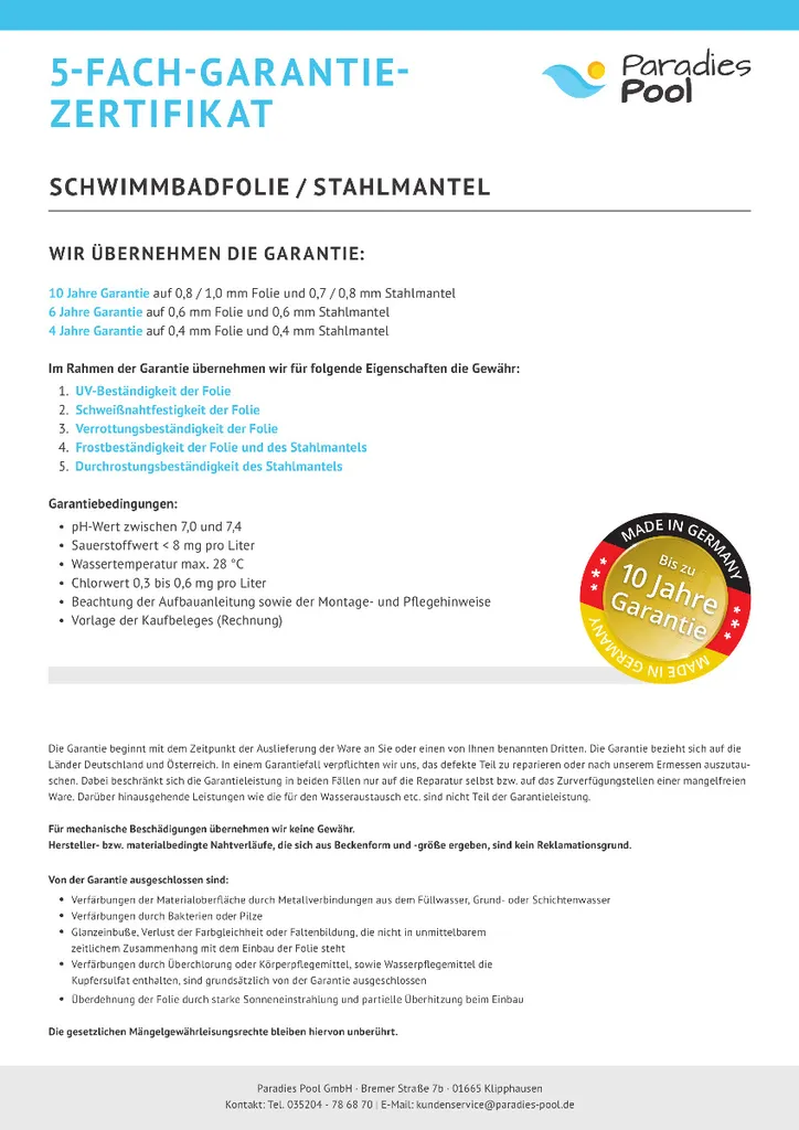 | Zusätzliche Varianten | Poolfolie rund 0,8 mm grau 4,50 x 1,35 m, Poolfolie rund 0,8 mm sand 4,50 x 1,35 m |