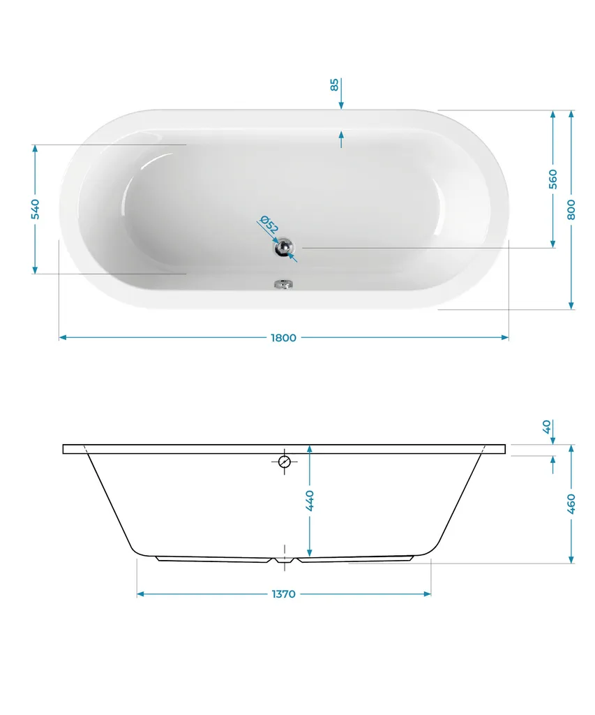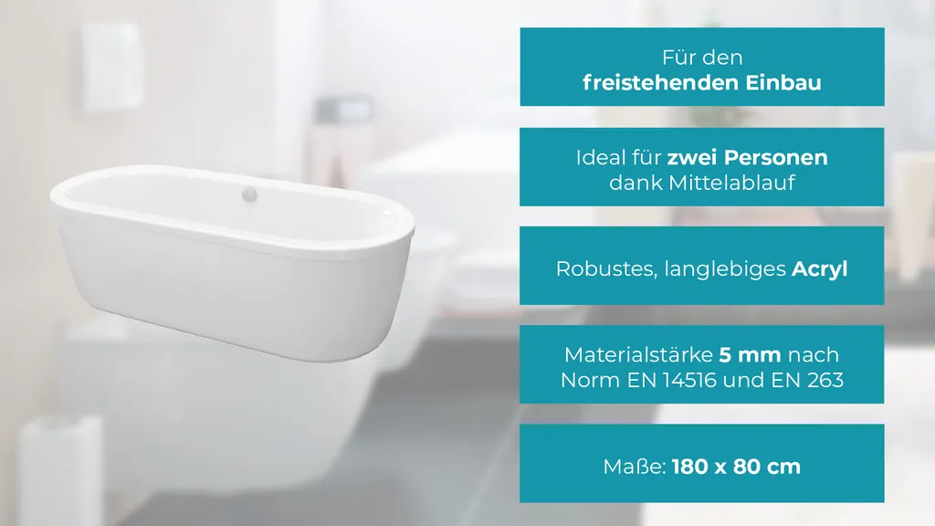 Calmwaters® Freistehende Badewanne 180×80 Cm, Acrylwanne Modern Soft, Duo-Badewanne Für 2 Personen, Maße 180 X 80 Cm, Freistehende Wanne Oval, Runde Badewanne Freistehend, Duowanne Weiß, 02SL3337