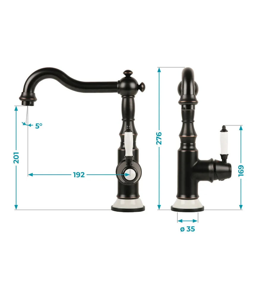 Calmwaters® Spültischarmatur Im Vintage-Look, Küchenarmatur Mit Keramikkartusche, Retro-Wasserhahn Küche, 360° Drehbar, Einhebelmischer Spüle, Weiße Keramik-Details, Messing, Schwarz, 12PZ5606