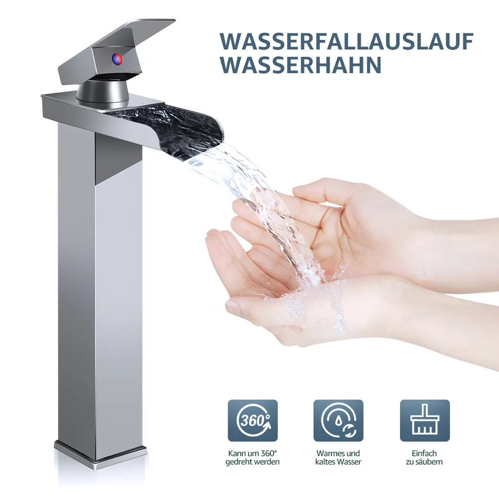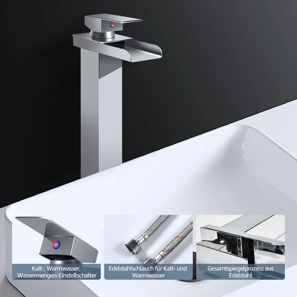CMYBabee Badarmatur Wasserfall Wasserhahn Bad Hoch Waschtischarmatur Waschbeckenarmatur Messing Einhandmischer Mischbatterie Bad