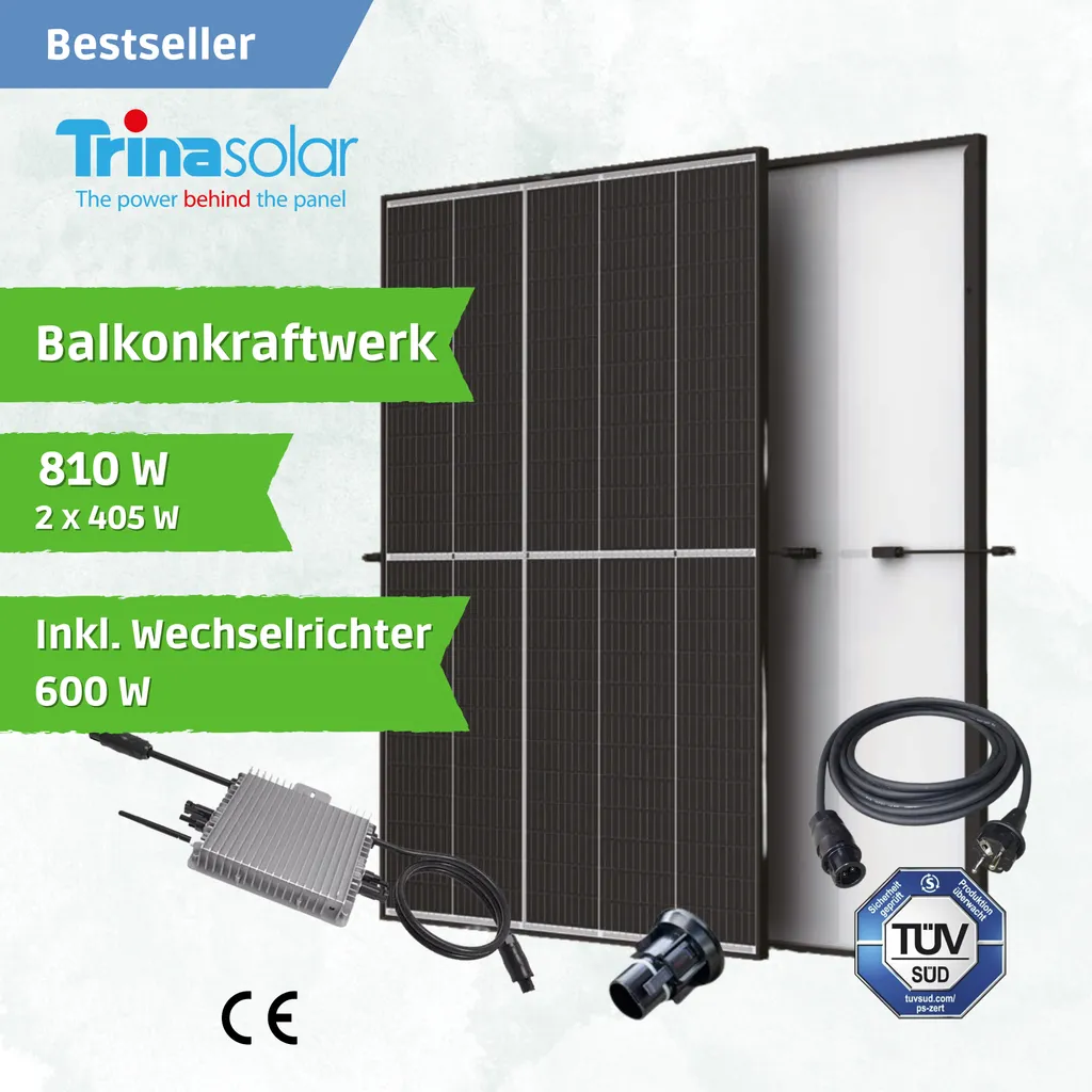 COOL BANANAS »Balkonkraftwerk 600W Photovoltaik Mini-PV Anlage«, 600,00 W, MONOKRISTALLINES DOPPELGLAS-MODUL, (Komplett-Set, 2x MONOKRISTALLINES DOPPELGLAS, WECHSELRICHTER, NETZSTECKER), MONOKRISTALLIN, Steckerfertig PlugPlay Genehmigungsfrei, WIFI,