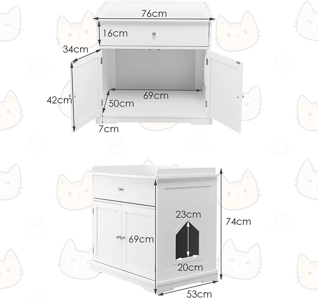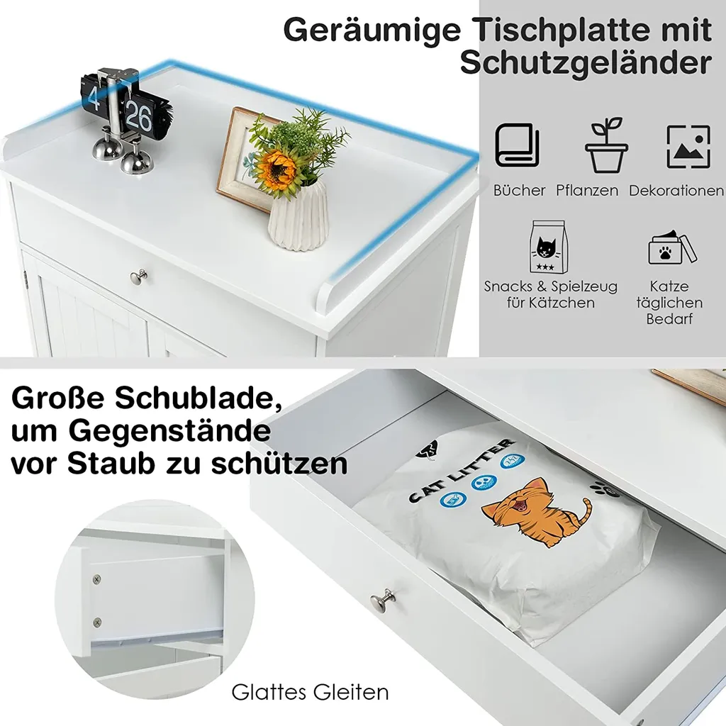 COSTWAY 3-in-1 Katzenschrank Mit Schublade, Tür & Eingang, Katzenhaus, Katzentoilette, Katzenkommode, Katzenhöhle Weiß