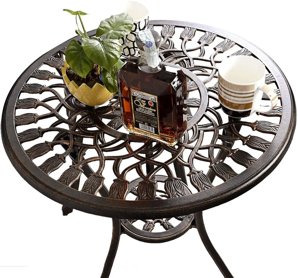 COSTWAY 3tlg. Bistroset Balkonset Gartenset Sitzgruppe Sitzgarnitur Gartengarnitur Gartenmoebel Bistrotisch Gartentisch Mit 2 Stuehlen Metall Antik
