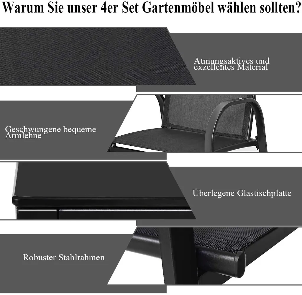 COSTWAY 4 Tlg. Terrassenmöbel Lounge- Balkon- & Garten-Set Inkl. 2 Einzelstühlen 1 Bank & 1 Couchtisch Textilene Sitzgruppe Sitzgarnitur Schwarz