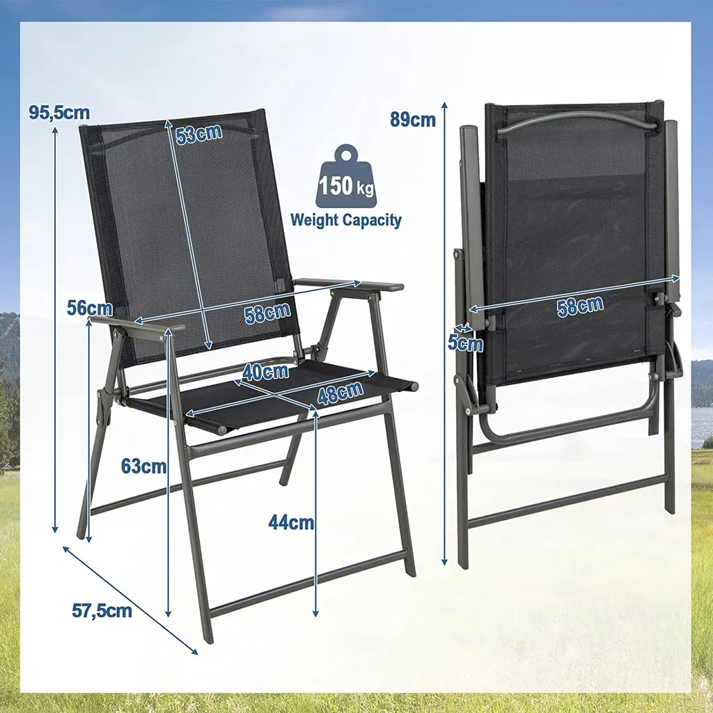COSTWAY 4er Set Gartenstühle, Klappstühle Mit Wetterfestem Stoff, Balkonstühle Mit Armlehnen, Terrassenstühle Für Garten, Hinterhof, Balkon