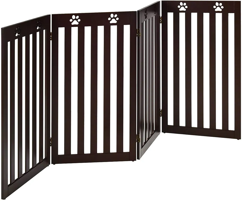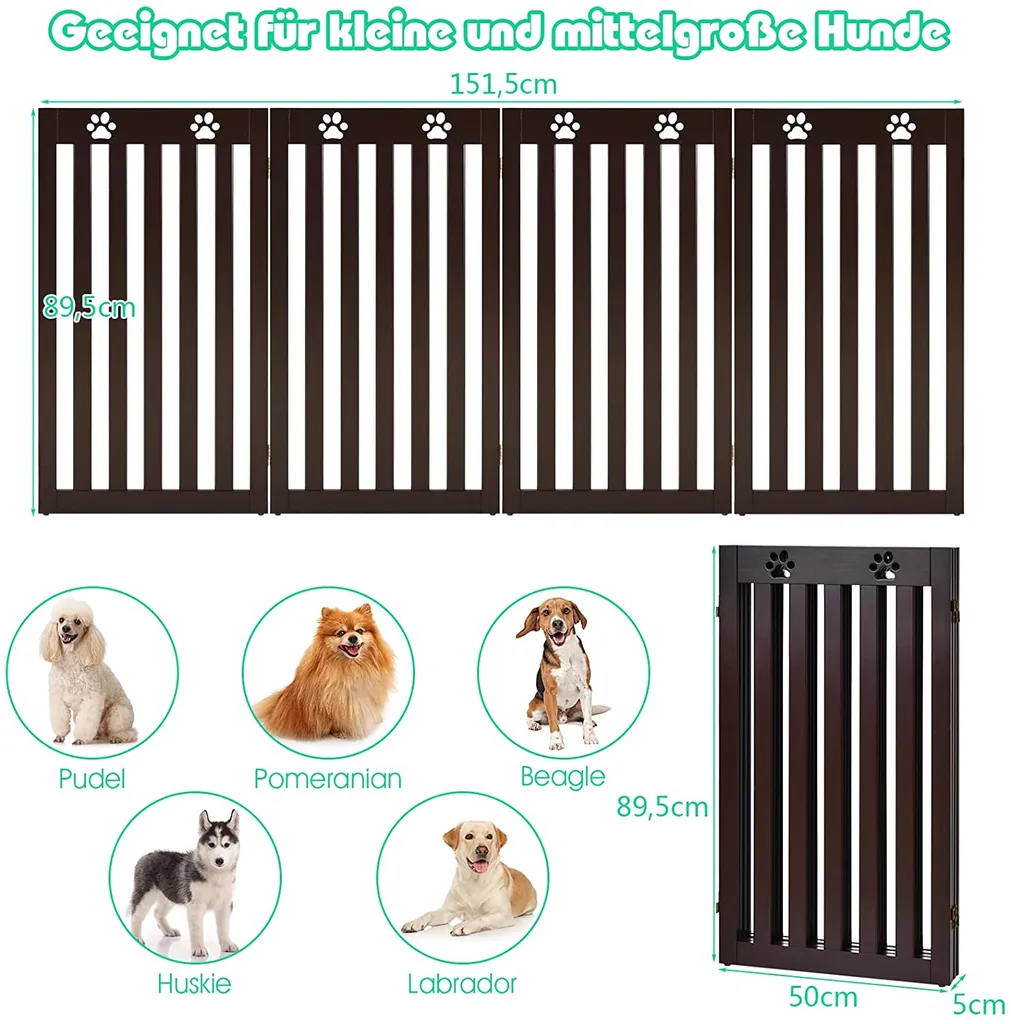 COSTWAY Absperrgitter Hunde 89cm Hoch, Schutzgitter Holz Klappbar, Treppengitter Hundeabsperrgitter Flexibel Türschutzgitter (Braun, 4 Paneelen)