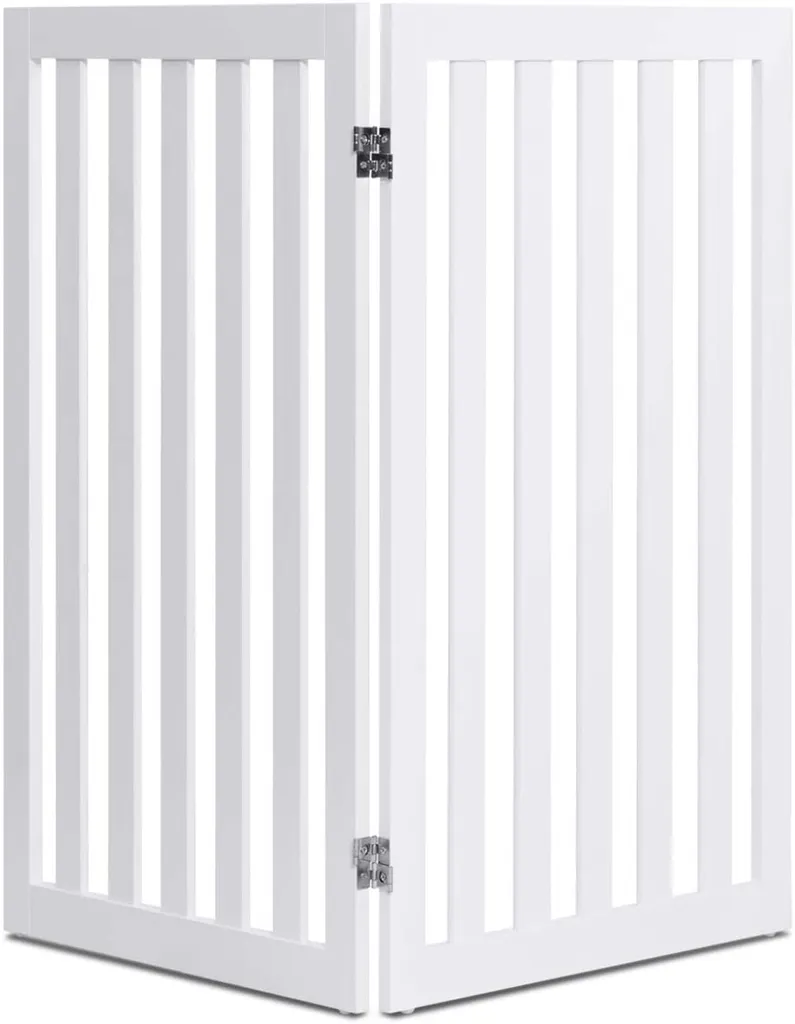 COSTWAY Absperrgitter Hunde 89cm Hoch, Schutzgitter Holz Klappbar, Treppengitter Hundeabsperrgitter Flexibel Türschutzgitter (Weiß-Verlängerung)