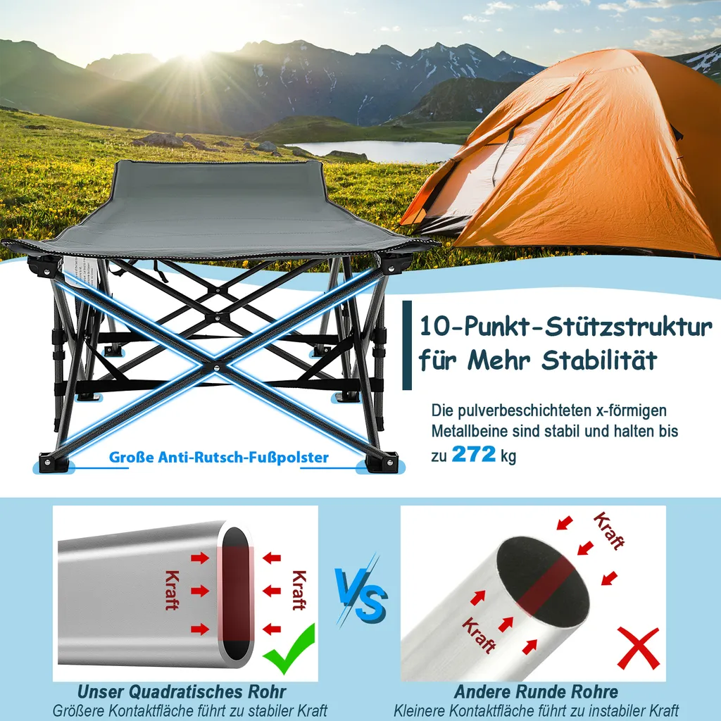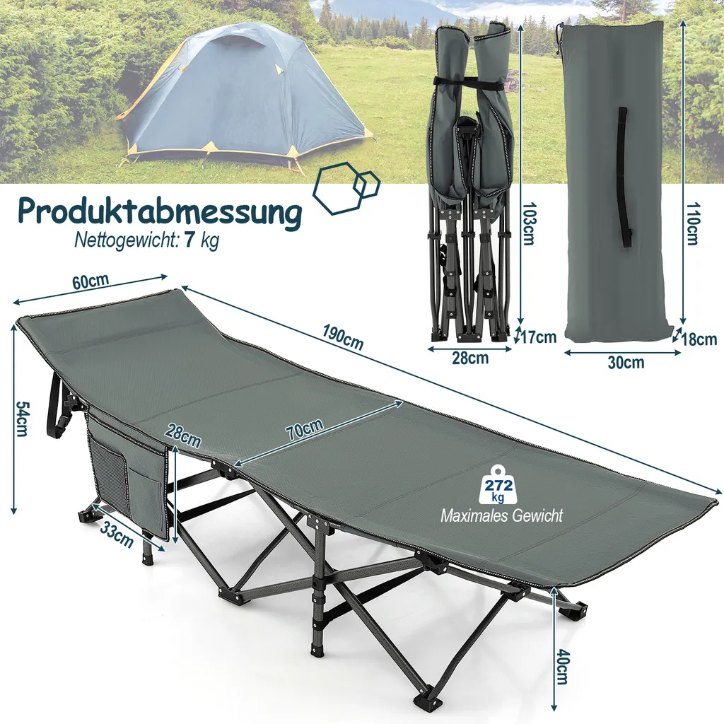 COSTWAY Klappbare Campingliege, Campingbett Feldbett Klappbett, Liege Bett Reiseliege Bis 400 Kg Belastbar, Einzelbett Faltbett Mit Seitentasche, Für Campingplatz, Strand Und Büro