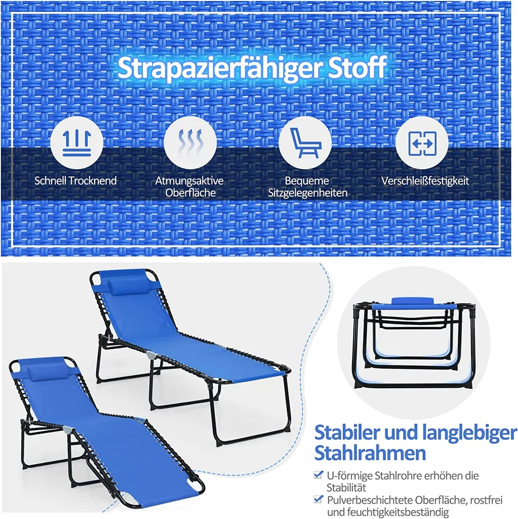 COSTWAY Klappbare Sonnenliege, Gartenliege 5 Stufen Verstellbar, Campingliege Klappbett, Liege Bett Bis 120 Kg Belastbar, Reiseliege Für Pool, Strand (Marineblau)